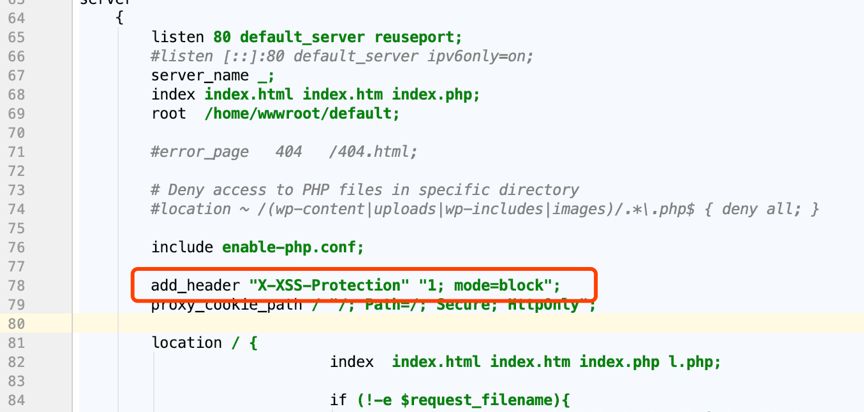 add_header X-XSS-Protection "1; mode=block";
